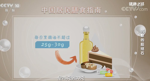《中國居民膳食指南》規定,成人每人每天攝入25~30克或30~32毫升烹調油,如果每天用油超出32毫升,說明存在患膽結石的高危風險。