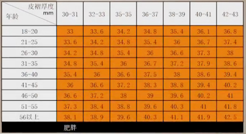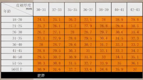 腹部脂肪厚度測試方法:用脂肪卡尺測量臍旁偏右的腹部脂肪厚度。