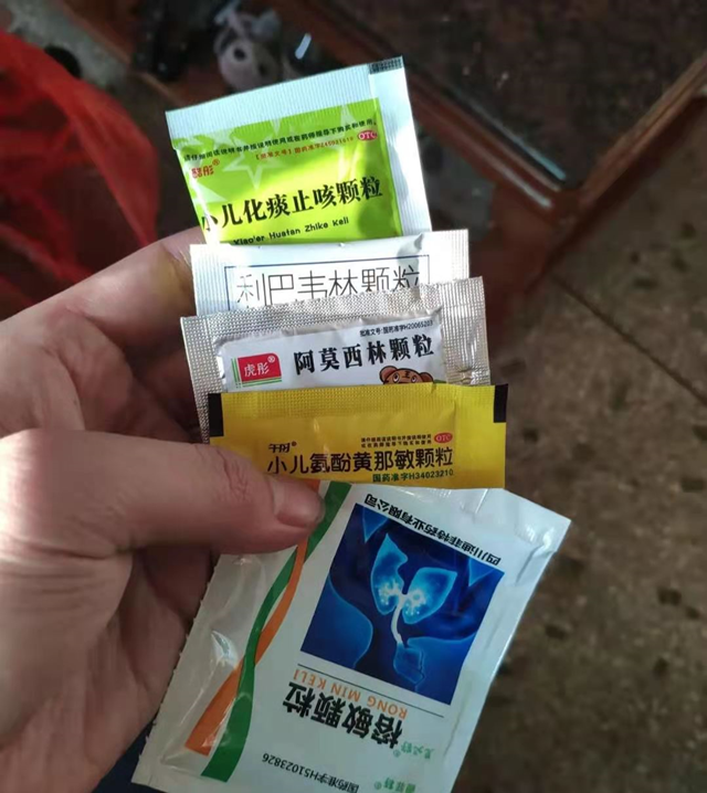 又配了兩個中藥,金葉敗毒顆粒和小兒柴桂退熱顆粒,讓低熱時吃。