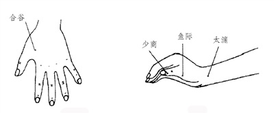 按摩手法 點揉太淵、魚際、少商、合谷等穴各30~50次,力度適中。
