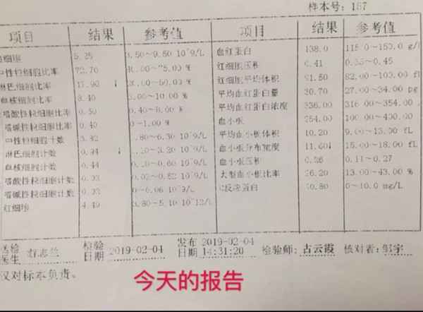 在孕期三次和產前一天的血生化、血常規檢查均無異常。