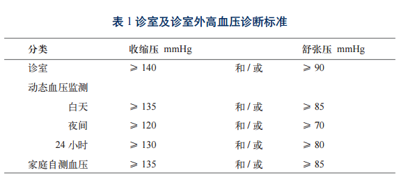 2. 診斷不確定或懷疑“白大衣高血壓”。有條件的可結合動態(tài)血壓監(jiān) 測或家庭自測血壓輔助診斷。動態(tài)血壓和家庭自測血壓診斷高血壓的標準見 表 1,具體參見《手冊》;無條件的,建議轉診。