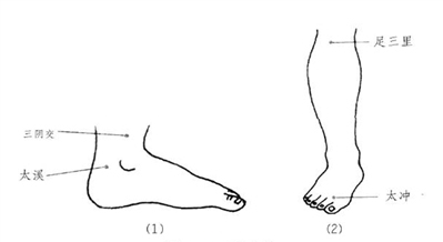 有效穴位 三陰交、太溪、太沖、足三里、涌泉等穴位(圖4、圖5)。