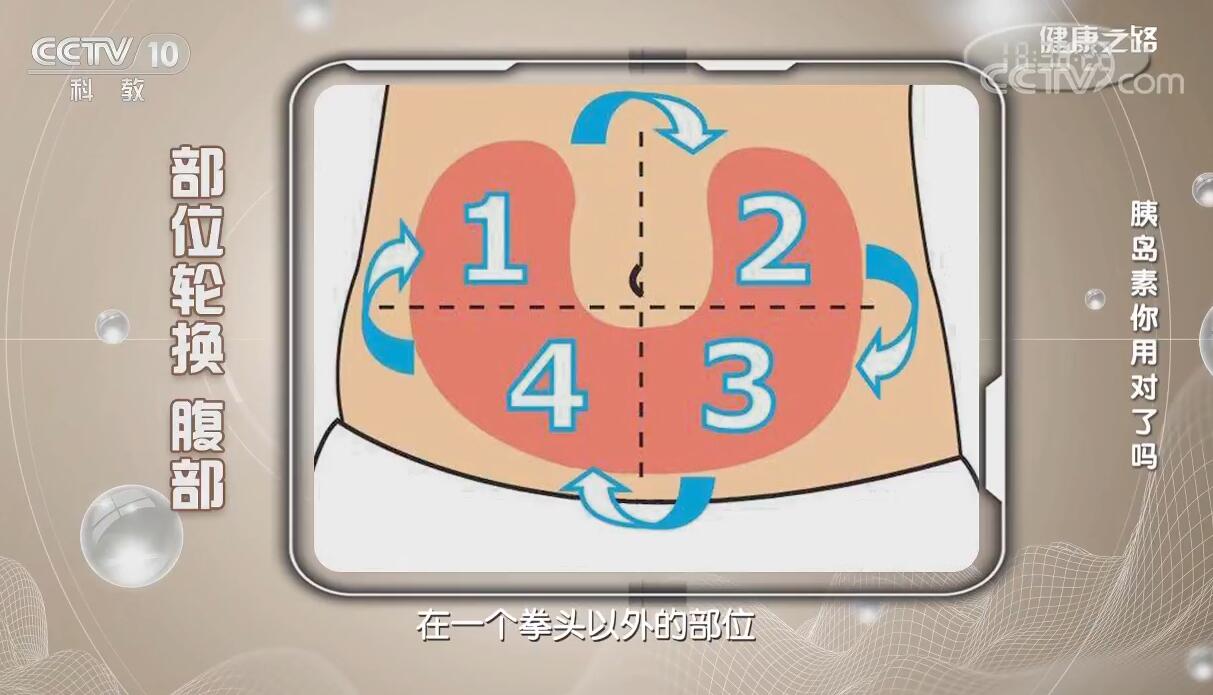 胰島素注射時需要輪換部位進行注射,以腹部為例:按順時針方向,以肚臍為中心,在一個拳頭以外或離肚臍5~10厘米的范圍內(nèi)進行輪轉(zhuǎn)注射。