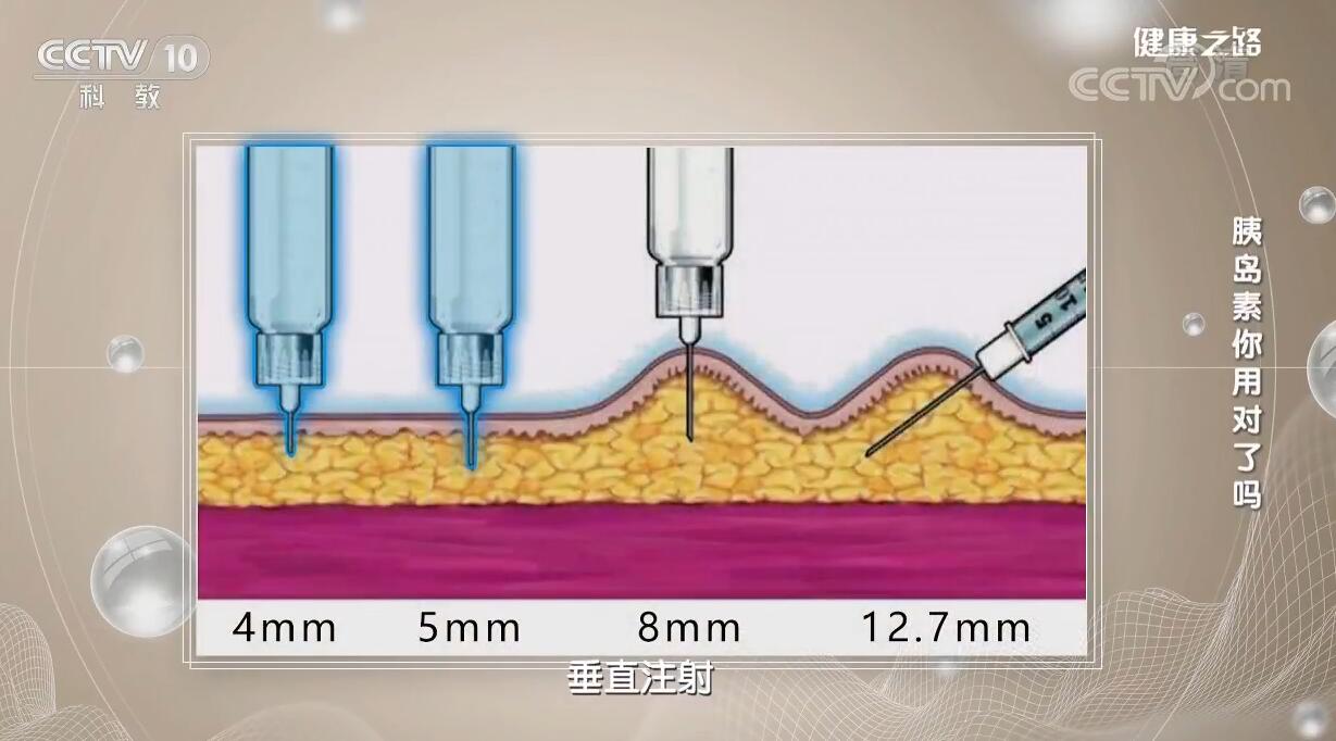 使用8毫米~1厘米的針頭進行胰島素注射時,需先捏起皮膚,再進行垂直注射;