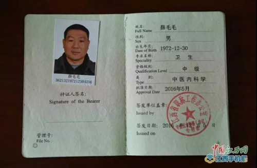 作為國粹,中醫是祖國傳統醫學,博大精深,用途廣泛。為提高醫療水平,同時考慮到今后中醫康復項目的良好前景,薛毛毛自費到縣中醫院進修學習,同時報名參加中醫自考。書山有路勤為徑。從此,多少個夜晚閉門謝客、精研“歧黃”;多少個凌晨山上采藥,“神農嘗百草”掌握第一手資料……功夫不負有心人,2005年6月順利通過全部課程考試獲得江西中醫學院中醫學專業大專學歷。遨游在祖國傳統醫學花園的薛毛毛自此一發不可收拾,先后考取了執業助理醫師、執業醫師、執業藥師、中醫康復理療師和公共營養師等4種執業資格,并于2016年5月獲得中醫內科學專業中級技術職稱,形成了“一專多能、全面發展”的知識能力結構,成為全縣醫學類職業資格證書最多、醫學職稱技術最高的“主治級”村醫。