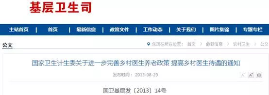 在《國家衛生計生委關于進一步完善鄉村醫生養老政策提高鄉村醫生待遇的通知》(國衛基層發〔2013〕14號)中明確了這幾點: