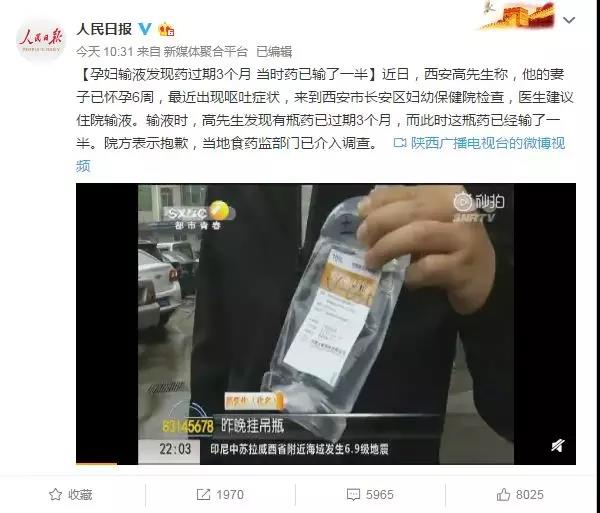 陜西廣播電視臺報道,當時孕婦的輸液藥品過期。視頻截圖