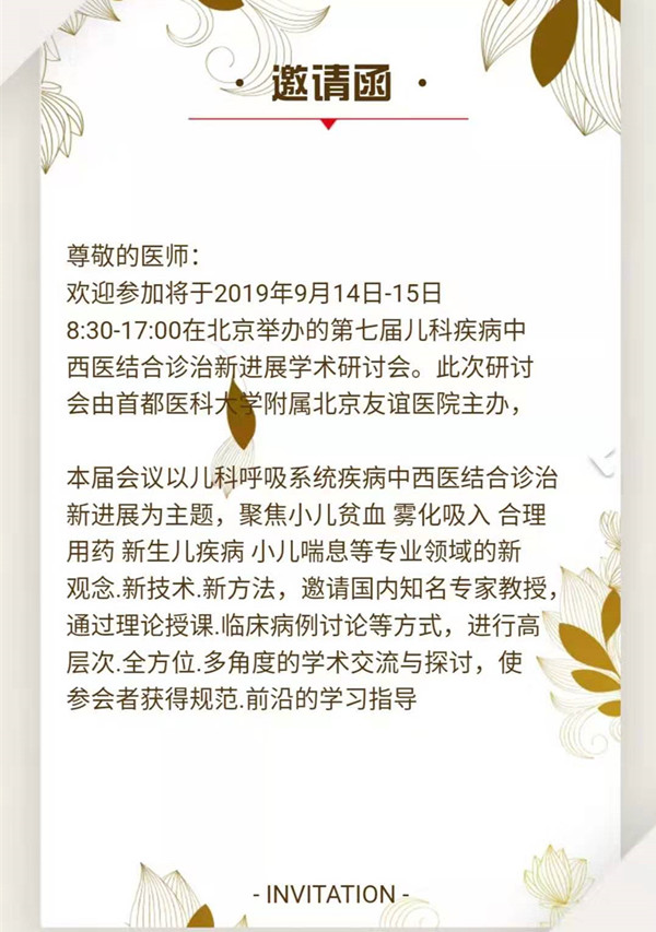 由首都醫(yī)科大學(xué)附屬北京友誼醫(yī)院主辦的第七屆兒科疾病中西醫(yī)結(jié)合診治新進(jìn)展學(xué)術(shù)研討會暨兒科呼吸系統(tǒng)疾病中西結(jié)合診治新進(jìn)展學(xué)習(xí)班將于9月14日-15日在北京召開。