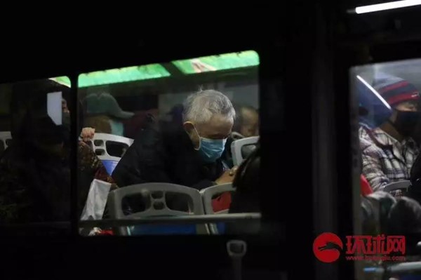 來到轉運現場后,環球時報-環球網記者發現負責轉運這批重癥病人的是一輛公交車,車上已經坐滿30多位老人,有些老人沒有座位只能站著,還有些老人只能坐在公交車的過道里,公交車司機與病人之間沒有任何隔離措施,據觀察,公交車司機本人防護裝備也不符合接觸重癥患者所需的三級防護標準。