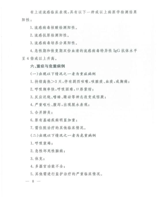 此版診療方案主要對以下內容進行了修訂完善:進一步完善了兒童流感臨床表現、并發癥等相關內容,增加了流感與“新冠肺炎”的鑒別診斷,進一步規范了流感抗病毒藥物使用方法,對輕癥流感中醫辨證治療予以進一步完善。