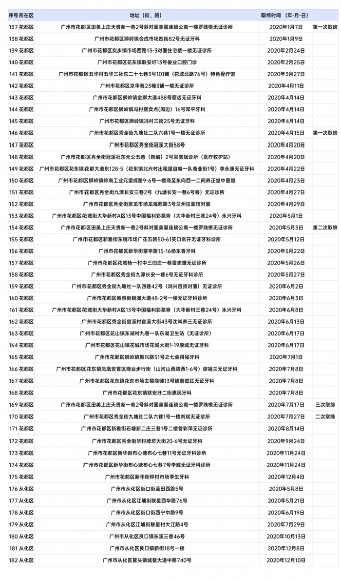據(jù)廣州市衛(wèi)健委消息,2020年,廣州在全市范圍組織開展了打擊無證行醫(yī)“黑診所”專項整治行動,在公安、市場監(jiān)管等部門的大力支持下,共取締無證行醫(yī)場所182間(次)。