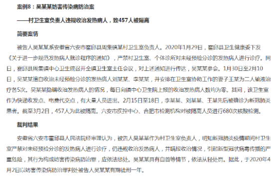 記者發現,自疫情以來這已經是第二起村醫被判案件,此前,已經有一起案件就被中華人民共和國最高人民法院列為妨害疫情防控犯罪的典型案例。