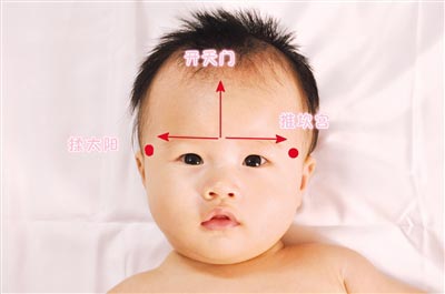 開(kāi)天門(mén):兩眉的中點(diǎn)至前發(fā)際正中線(xiàn)成一直線(xiàn)為天門(mén)穴。用兩拇指自眉心向上交替直推至前額發(fā)際,稱(chēng)“開(kāi)天門(mén)”。
