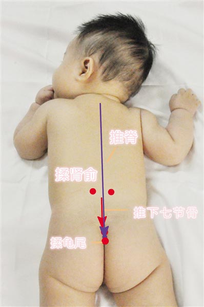 推拿處方:揉外勞宮300次,推三關(guān)100~200次,清補(bǔ)大腸300次,清小腸200次,清補(bǔ)脾經(jīng)300次,揉龜尾300次。