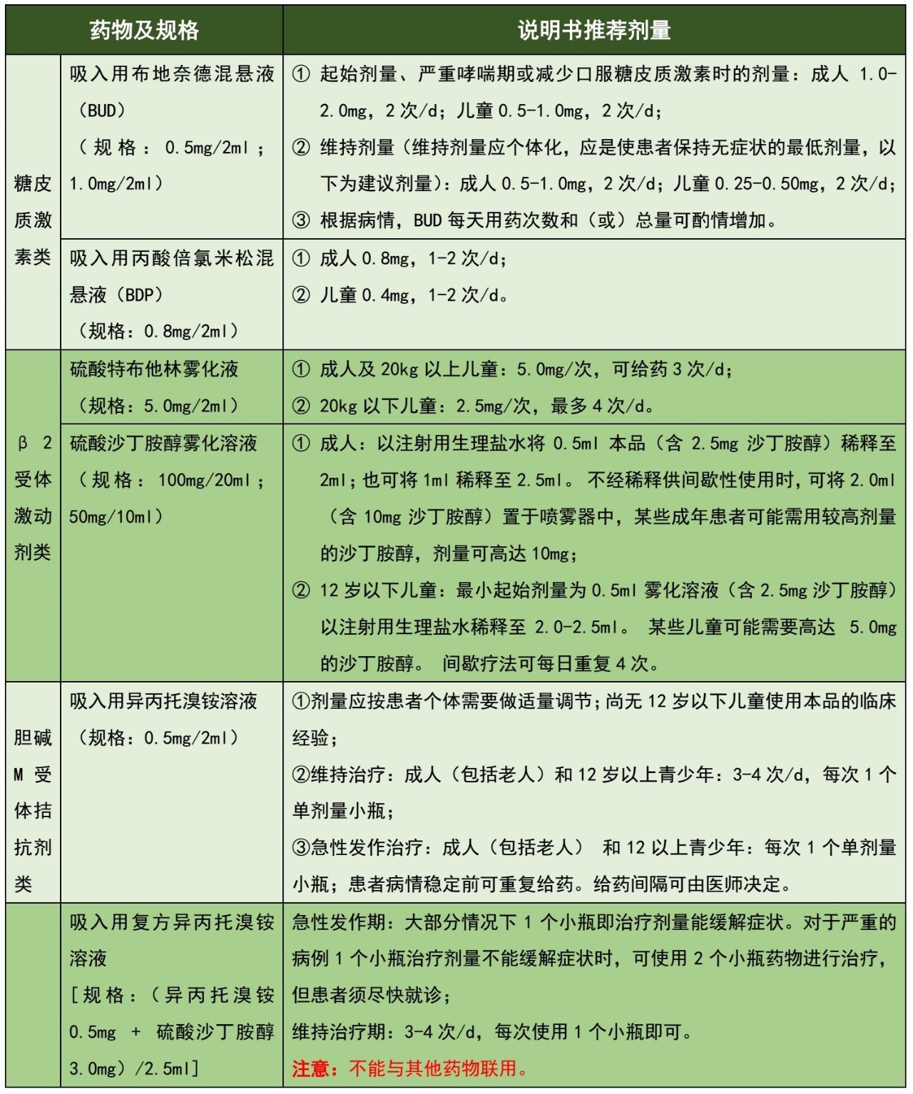 1、常用霧化吸入藥物有哪些?推薦劑量?