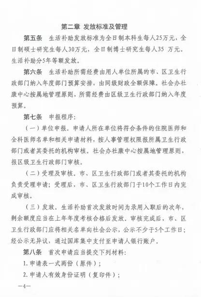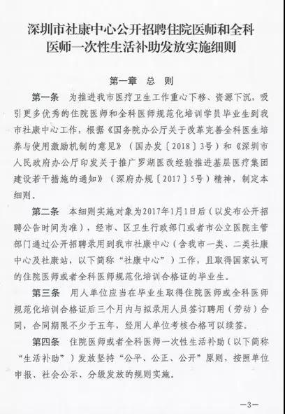 “全日制本科生每人25萬元,全日制碩士研究生每人30萬元,全日制博士研究生每人35萬元。生活補助分5年等額發放。”近日,深圳市衛計委、深圳市財政委員會印發文件,對深圳市社康中心招聘住院醫師和全科醫師一次性發放生活補助提出實施細則。