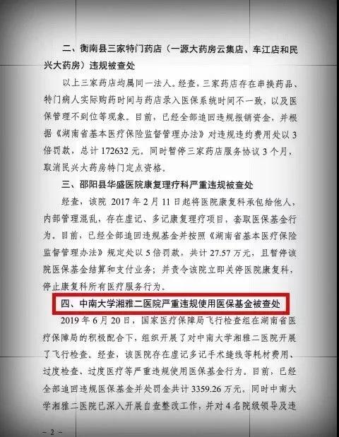 其中,湖南省醫(yī)療行業(yè)的龍頭老大——中南大學湘雅附二醫(yī)院被通報。