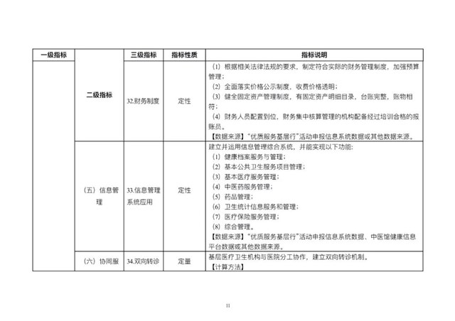 (二)綜合管理。重點評價經濟管理、信息管理和協同服務。通過經濟管理指標考核基層醫療衛生機構收支結構的合理性;通過信息管理指標考核基層醫療衛生機構各項服務信息化功能實現情況;通過雙向轉診、一體化管理考核協同服務情況。