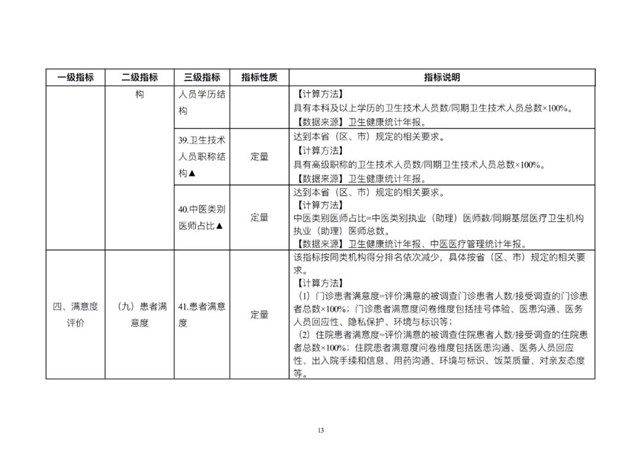 (四)滿意度評價。重點評價患者滿意度和醫務人員滿意度。患者滿意度是基層醫療衛生機構社會效益的重要體現;醫務人員滿意度是基層醫療衛生機構提供高質量基本醫療和基本公共衛生服務的重要保障。