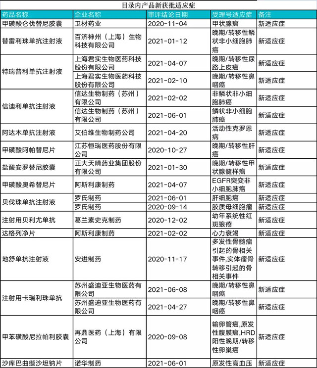 2、2016 年 1 月 1 日至 2021 年 6 月 30 日期間,經國家藥監部門批準,適應癥或功能主治發生重大變化的藥品。